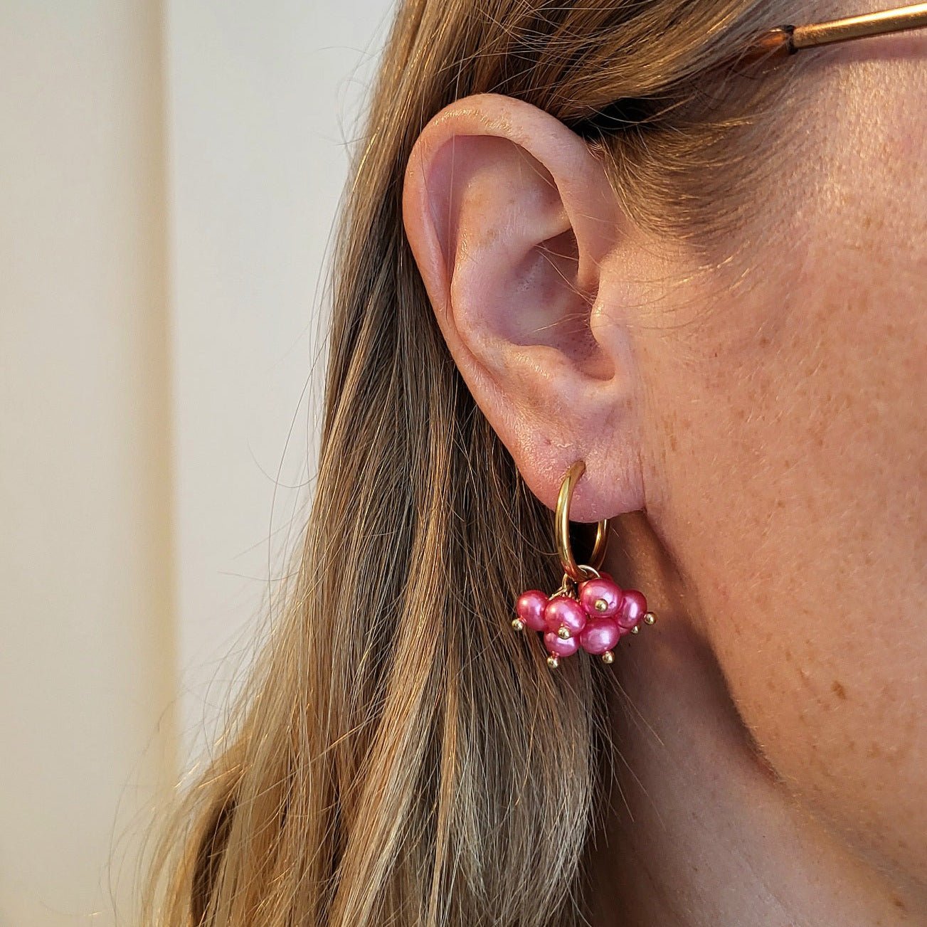 Aurora helmikorut huggie -renkaalla (useita värejä)