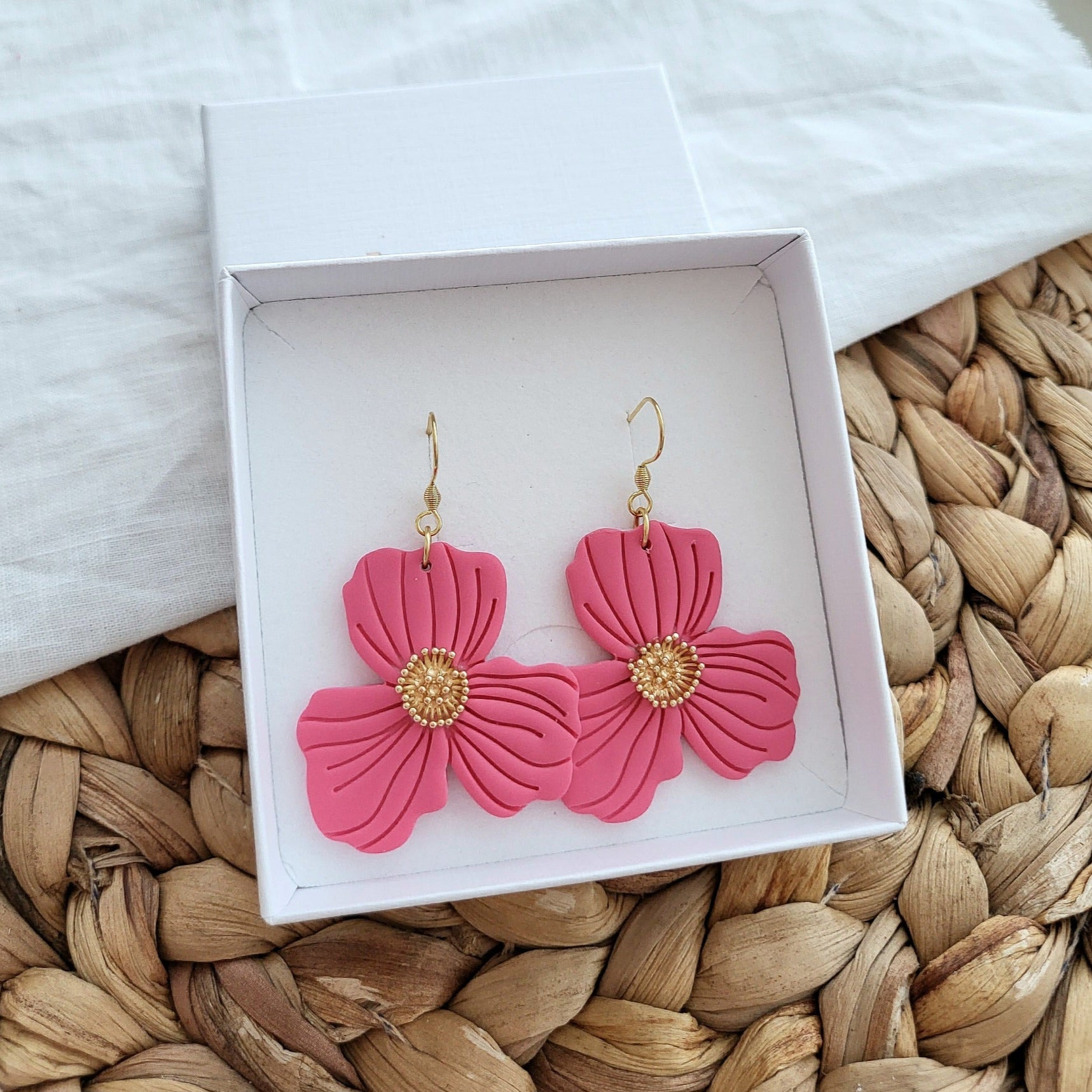 - Kauniit kukkakorvakorut on valmistettu mattapintaisesta polymeerista.