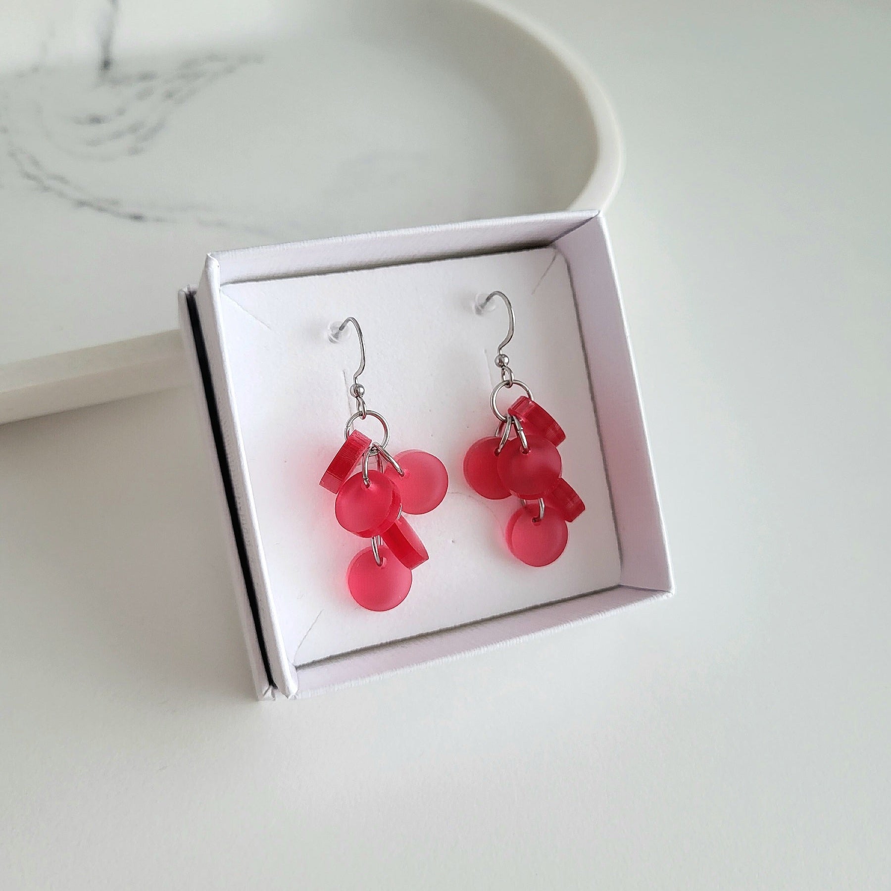 - Herkullisen väriset korvakorut huurteisissa akryyliväreissä. Hologramminen versio peilaa värejä kauniisti ympäriltään.
