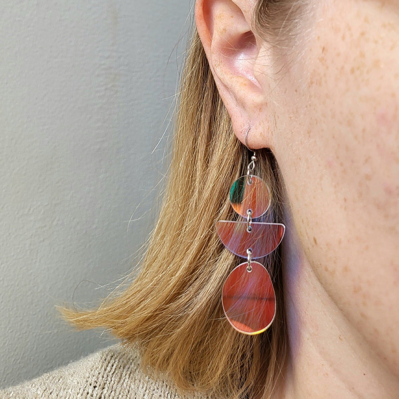 - Upean näyttävät ja eläväiset korvakorut on valmistettu valoa heijastavasta hologrammiakryylistä.