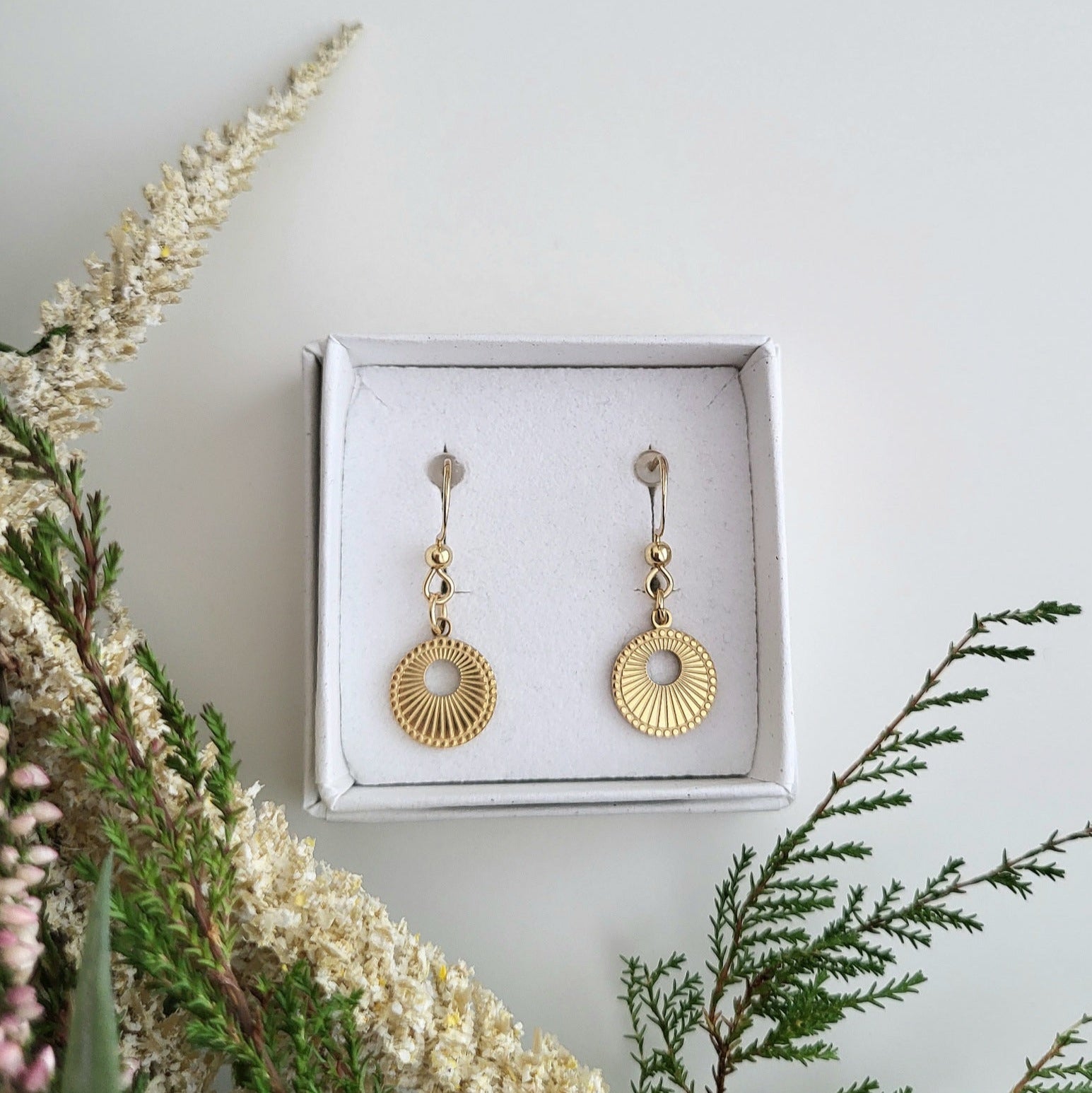 - Korvakorut pakataan kauniiseen korurasiaan.