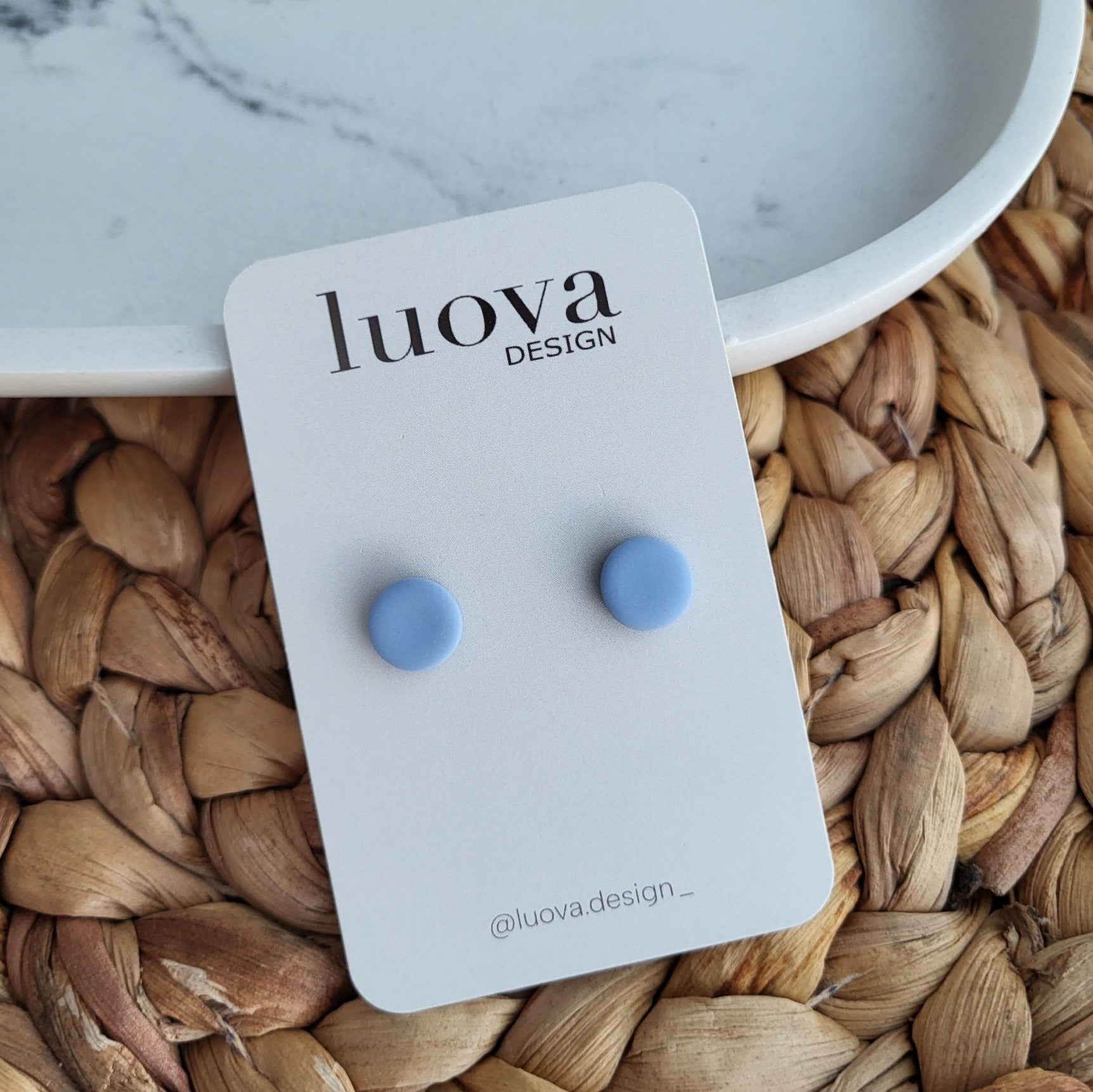 - Suloiset nappikorvakorut on valmistettu mattapintaisesta polymeerimassasta, osassa on hartsikiilto päällä.
