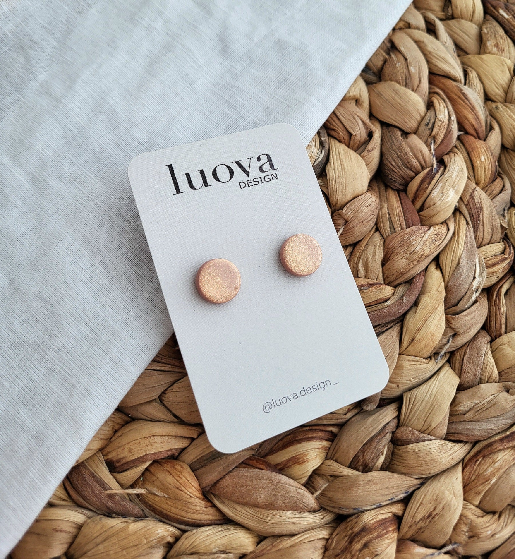 - Suloiset nappikorvakorut on valmistettu käsityönä polymeerimassasta, jonka päällä kiille sekä välissä kultahippuja, hopeahippuja tai helmiäis/glitterihohde.