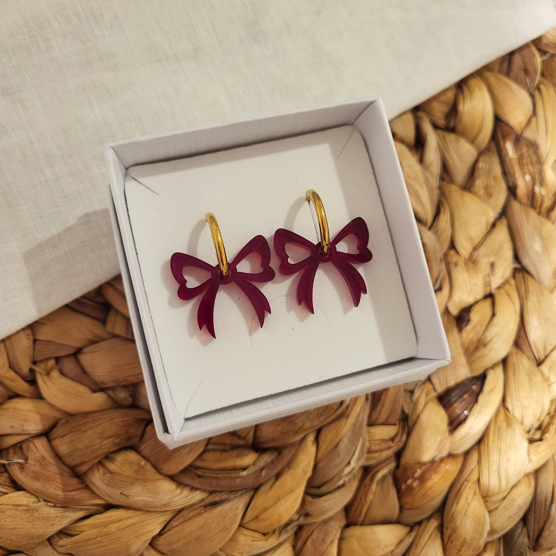 - Suloiset rusettikorvakorut on valmistettu hieman läpikuultavasta akryylistä.